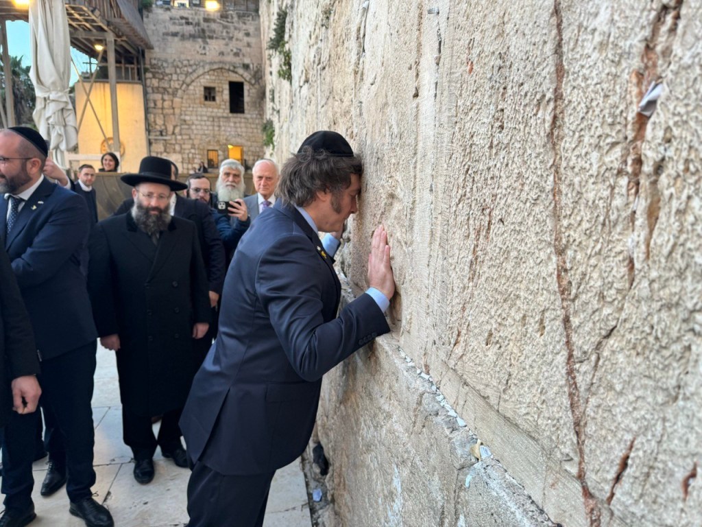 El presidente Javier Milei comenzó su tercera visita oficial a Israel con una recorrida por el Muro de los Lamentos, donde realizó una oración como primera actividad en la Ciudad Vieja de Jerusalén. Durante la visita, recibió una “bendición” por parte de efectivos de la policía fronteriza.